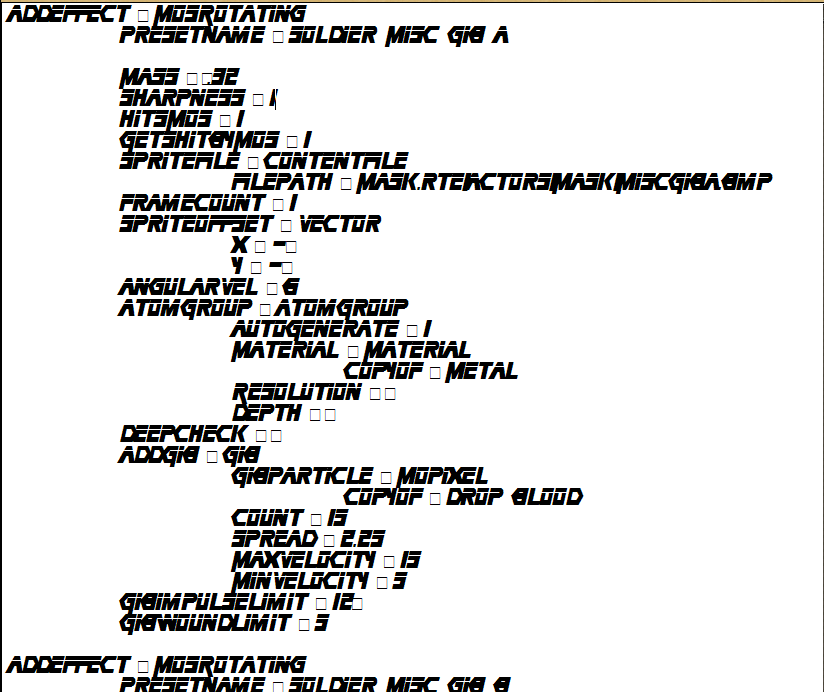 Benpasko wrote: My upcoming mod is so hardcore, I have to code it in a metal gear solid font. IMG SNIPPED Any screenshots? I see that MGS font does not have a sign for "=."