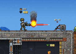 The thing is that I really can't make it any weaker, because using it to dig tunnels is already annoying as hell, since the particles often miss a few lines of dirt, and you have to wait for a reload before you can clean them up. But I'll try to do what Roon suggests; it can't be picked up, because then it would have GetsHitByMOs = 1, which would mean that it would be torn apart by it's own particles. And before anyone says that I should use FireIgnoresThis, that would be useless, since it shoots emitters that emit the uber-sharp MOPixels.