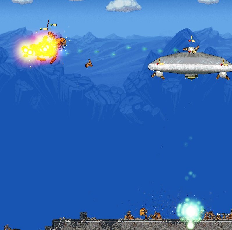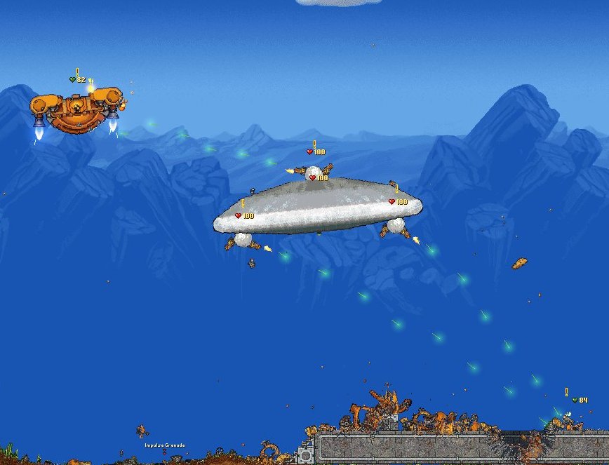 WIP of a flying saucer that has a plasma cannon pointing downwards(activated/deactivated with mouse click), and some lua turrets. The saucer is heavily armored, but deploying the cannon will expose its vulnerable core to attack.