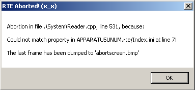 I have tried everything from changing the name of the .rte to deleting and moving characters and lines around in the .ini. No matter what I do, CC always crashes when reading the last character of the last line in the Index. The Index looks like this: Attachment: