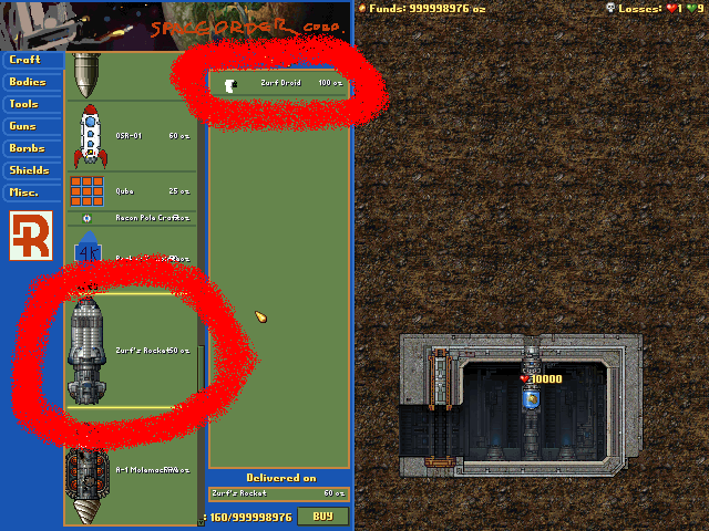 File comment: Buy screen with the "Zurf" droid and rocket.
