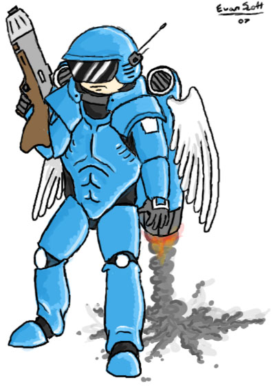 Ok this guy is weaker than the light Trooper but also cheaper,he is the basic Federation trooper,He is lighter than the Light trooper therefore being ablle to jetpack better but is only equiped with a kevlar vest which is weaker than the small plate ampur on the trooper and a steel helmet(a helmet a little bit weaker than the coalation helmet)