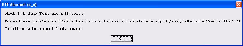 Referring to an instance ('Coalition.rte/Mauler Shotgun') to copy from that hasn't been defined! in Prison Escape.rte/Scenes/Coalition Base #836-AOC.ini at line 1299!