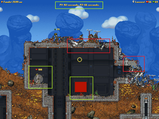 File comment: things i dont like: in this zone, the roof is too thin, so gibs leak in. also, the bots are given concrete guns as primary tools, this is a massive flaw. they think they are digging so they spray concrete everywhere. maybe make a side-tool slot aswell, with more 'nades in there aswell. things i do like: I'm winning. The zones are set up in a way that makes defending actually ergonomic, also allows grenades to be used brilliantly.