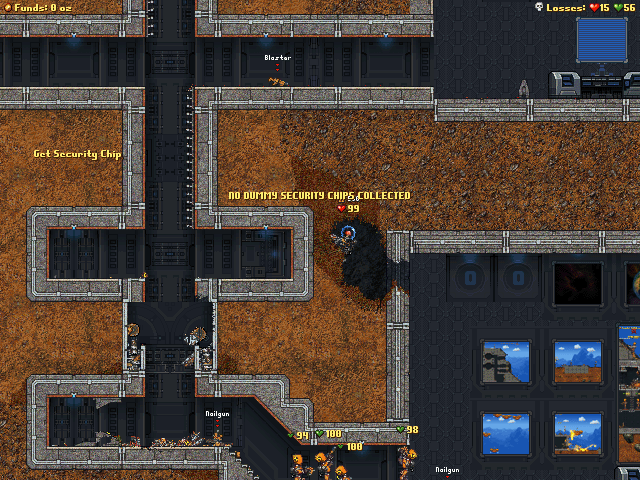 Hah, amazing mission. I managed to upload, go through the teleporter to the top where I positioned a coalition with a gatling cannon, he was hit by a falling box and torn apart. I than proceeded to send a few spawned robots to collect the random chips and gave them to my brain. I cleared out the healing room and used it as a forward base, stocking it with two robots, my brain, and one remaining coalition man with his auto shotgun and grenade launcher. The grenade launcher man accidentally fragged himself, so I had my two robots clear the auxiliary room, they both died due to random "death by dropping dummy" circumstances. My brain made a fanatic run into the auxiliary room, and dumped the crack into it. I scrambled to pave a way back through to my forward base via turbo digger I had acquired earlier as part of the plan (just than as a random luck of the moment thing), and almost died to a dummy. I got caught up reloading my digger with 0 ammo, while a dummy decided to stand in front of me with a repeater and not shoot. I killed him. This is the end result.