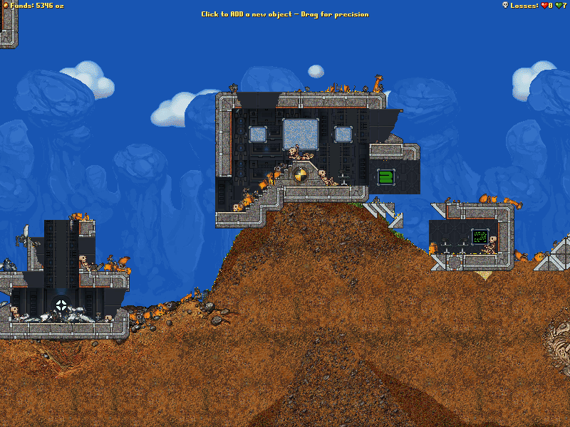 Hi, All. V1 Quote: The Air Force Divisions from SS #47 was attacked on space near Earth. They lost many crafts. And, some crafts were save. The remaining craft went down to Earth to prevent from enemy attack. They must protect their Admiral Brain. Just Scene everyone. Instalation : 1] First, you must have MP3 by Gotcha! http://www.forums.datarealms.com/viewtopic.php?f=24&t=122242] Download Maps - Space.rte.rar and Maps - Earth.rte.rar at the bottom 3] After downloaded, copy-paste in your Cortex Command directory. Overwrite the files (Or anything else) Some Images   Notes :1] Don't use too many turrets like in my screenshots. This will make all of your man (except turret and brain) Dead without anyone attack it. V2 Quote: The Air Force Division were repair their ship in a mountain base called "Suronan". But, when they were repairing some craft. They were attacked by B - #98 whom attack they when in space. You will be the Commander for this one. Admiral Yii Shun Shinn was defeated. Prepare to assume. Now, this one will be 2 players scene. There are'nt brain place here. Some Images   repairing crafts V3 Quote: A Ship Dock Base in Earth "WolfHeezze" was creating a new model of Space Ship. It's called Farisi #97. This craft take new look, function, and time of fly. With Drop Ship Dock in the bottom and Rocket Dock in the upside. It can be use for repairing other smaler craft. This craft was finished and ready to tested it skill. Before it launched, Enemy attack it again. The B - #98. They dropping some Drop Base. Drop Base is kind of flying fortrees, that can carrying some troops, cargo, etc. We must protect our brilliant new craft. We must wait until SS #47 reinforcements help us, or we can destroy them by our self. But, arrive or not arrive SS #47, we still must give this new craft to them as a Command Craft. Commander, lead our men to victory ! Two players again. This map will there in Maps - Earth.rte. May be lag in the begining. Cause, The destroyed Dummy Rocklet. Could more cool if someone can make this as a missions in UniTec faction. (really, I really like and almost any times I used it) Image of Right Outpost will update with picture soon. (Damn, imageshack is really2 bad)