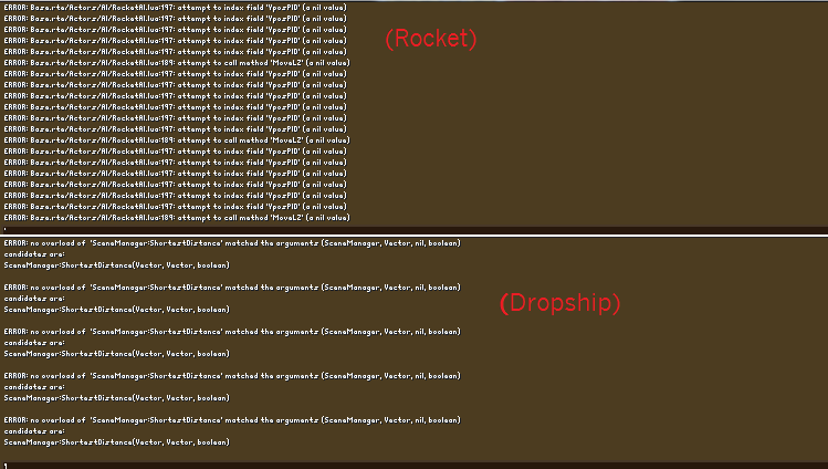 There's a (not really visible) bug with the rocket/dropship AI that fills up the console with this.