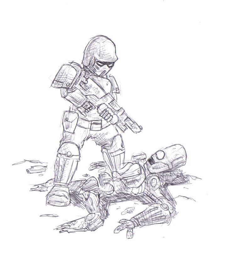 Here's another from me.  A clone gazes beyond the jagged peaks of the new world.