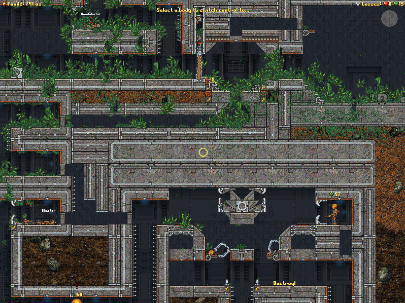 I was working on an edit of Tutorial Bunker for no real reason, thought I'd share a screenshot. The pile of dirt in the middle of the screen is just my current cursor for it, since I was in scene editor. I added in a lift on the left side for jumping/weak-jetpacked characters, and added another floor and a top hangar.