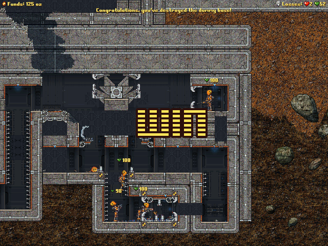I've explained this one before. Basically, when one of the dummies is spawned from the entrance on the left, it chooses one of three paths: Find a random point in the base and go to it, attack your brain, or defend the dummy controller. Unfortunately, setting its waypoint to the brain's position has the nasty side-effect of it attempting to dig through the material around the brain so it can go to the brain's exact position. I didn't foresee this, and it never actually happened to me during playtesting, so it went unnoticed. The AI no longer goes to the brain's exact position, as that option has been removed, taking the likelihood of that happening again down a few notches.