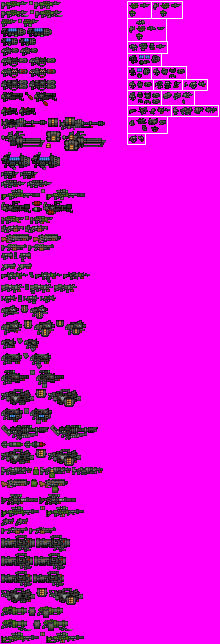 Hmm. I guess they just looked bigger at first glance with nothing to compare them to. So I dragged all the original sprites in (minus mags), and scaled the whole thing up by 3x. Spoiler'd because height; Now if you'll excuse me I need to go scrub the magenta off my retinas again.