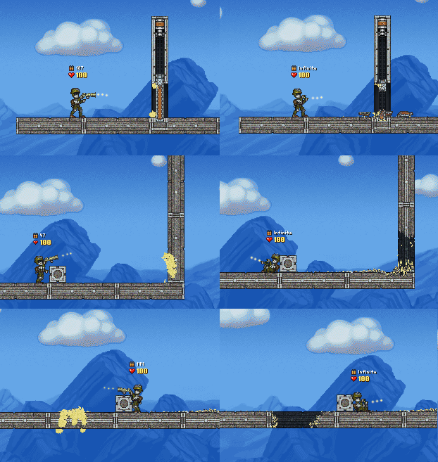 Minimod: Increased Material Strength Test It is what you expect, a materials.ini with the material strength increased. By a factor of five in this case. DownloadNo pic because there isn't anything to see, you have to play with it to get an idea of what it's like. Also note that this took me 10 minutes and thus has no semblance of balance. Some weapons no longer work and just bounce off actors and the default diggers are useless against terrain. I included a copy of each digger buffed to be a bit more effective while retaining a feeling of being difficult. Also, a copy of the blue triggerable C4 for breaching doors. Try placing one or two right next to the door you want to blast and triggering them, it should do the trick.