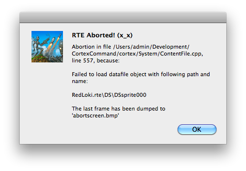 Replace CortexCommand/RedLoki.rte/DS/DS.ini or edit it and replace \ with / character.
