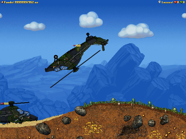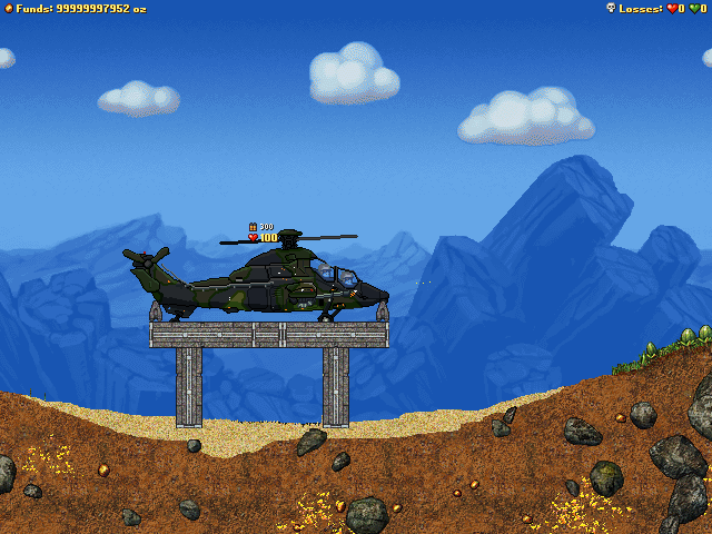 Geti wrote: saw the gibs you made, i love them but id love them more if there were more sub gibs of the larger particles. it makes the wreckage crumple better on the ground, but it will take more work, so only if you feel like it. I'm not too fussed about making gibs, they're fairly easy especially when the sprite are already there and all i gotta do is split them upan idea that woulnt be very hard: make the gunner eject, or jump out (idk if the copter in question has ejection support or not) if the pilot is killed - this means that if they kill your pilot by shooting you through the window you get to keep a guy, who'll be safe from the silly thing zooming off and sploding. how do to this one: make the pilot an attachable, the breakwound should be an AEmitter (with suitable offset) that launches a gunner actor (with an attached smoke emitter if hes ejecting). give the pilot attachable a medium gibimpulselimit and gibwoundlimit. make him gib a dead pilot actor with some bullet holes. the gunner should just eject now from the pilot attachable gibbing when the ship explodes anyway. simple Yes, simple enough, for you! lol. I tried making him eject before as a gib, but even if i set the gib to having team = 0, it wouldn't gib as a controllable player, then I tried gibbing a dropship or a rocket with the player in its inventory, but that just made the game crash. I'll give your suggestion a try though. maybe I've been going about it the wrong way, and thats why it was crashing.Edit: I finally made a guy gib out without it crashing, woo!!! lol. Now I can implement your emitter thingo for jetpack on a chair action, muhaha.maybe make the gunner's head move when aiming too, as the pilot would be looking where youre going more likely.. When I was randomly trying to mess with a dummy just before I got into this I somehow made parts which rotated with the head but weren't attached to it, I have no idea how I did it and I have already deleted the .ini file cause it was so messed up. and yes, both will fire at the same time, just like using the darklone knife with either of the pistols. thats a shield/weapon error.. Jackzon47 wrote: Don't buy chopper in a dropship, cuz it will crash your game when it gibs
