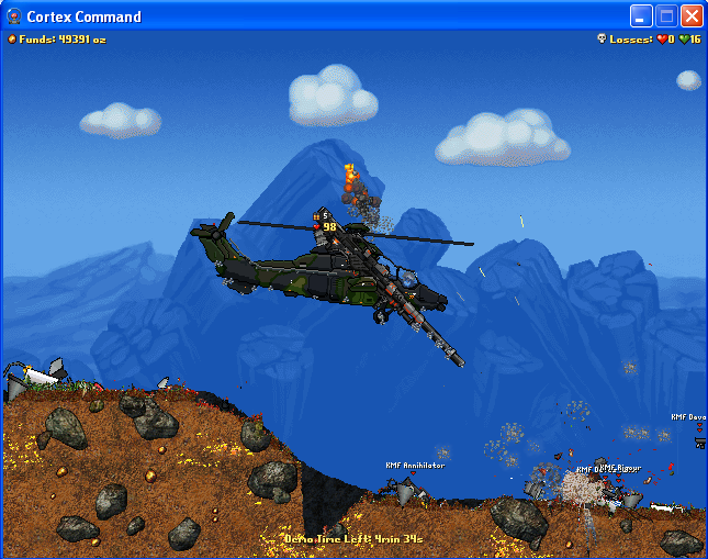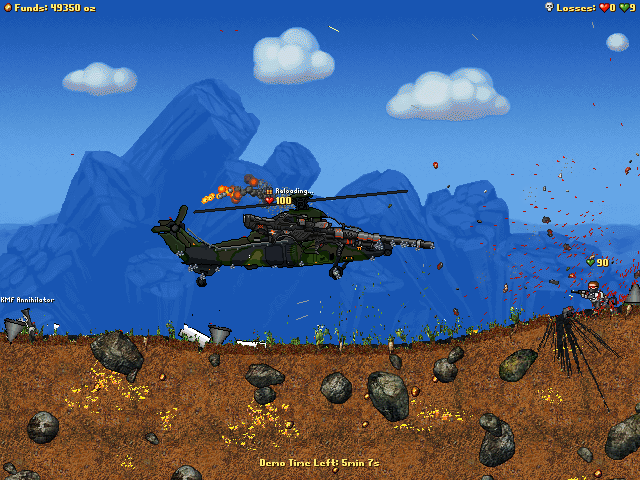 5. The chopper spins too much when you press "down" and I end up in the ground. Could you also fix that? I'm not exactly sure how that can be fixed though... -The agility of it has been fixed so now you should be able to move left and right better by using the jetpack and aim with the cursor. (It may need further tweaking if there's too many complaints I might also slow down a bit, I've been working on this a lot today, and I need a break, lol. Get back to work you slacker!!!Enjoy!