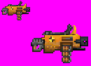 EDIT2: Here is my idea for a little more flair to the weapon. Now it's poorly done, so don't go expecting a ton, but I took off the yellow piece over the trigger and handguard assembly. Makes it seem a little less chunky to me. I also removed the front sight and in its place added sort of another hangdguard. It looks like a little yellow wave right now but the general shape is there. I added 3 rivets to the lower portion of it, just to spice that area of the gun up a little. I didn't index this properly but I'm sure you will. Kept the smaller sprite in there for side-by-side comparison.