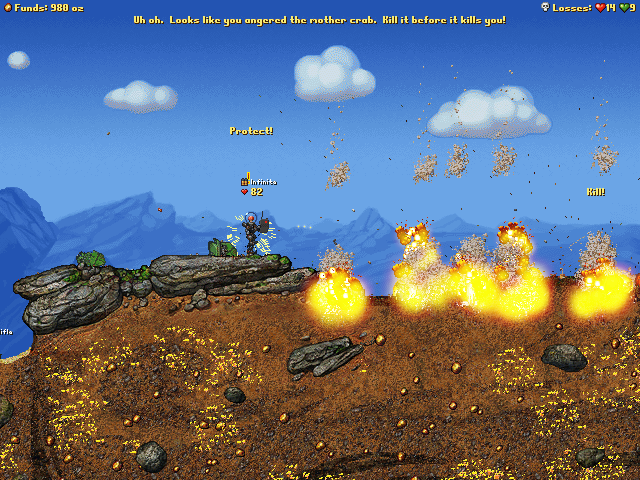 A radio. Not the music kind. When you use it, it sends a Rocket MK1 at high speed upon every enemy in the field. It's a very humorous way of smiting your enemies, and is useful when you just want to clear the map of people. Features a custom sprite! (The first I've ever made) I did it by making the radio have infinite ammo, making the bullets invisible and unable to damage anything, getting rid of shells, etc. and then attaching the rocket-drop script to the invisible bullet I fire. I had to make my own special rocket (that looks exactly like the Rocket MK1) with side thrusters that didn't do anything for the rocket to keep going straight down. With a normal rocket, it'd try to correct itself and veer off to the left. It's the first mod I've ever made besides an overpowered pistol from a tutorial. This is it: Attachment: