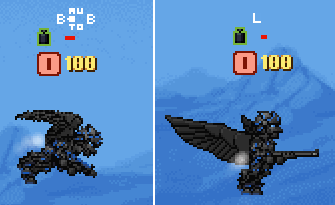 Asatruer wrote: Darlos9D wrote: Attachment: TenguTeaser.bmp Gordon's ALIVE! Those wings look pretty good, but it strikes me as being a little ostentatiously tacticool and not quite sci-fi stealth ops enough. In other words, I like them, but like the old ones better. Well, keep in mind the Tengu technically isn't the stealth unit. I plan on making the Yuurei even more balls-out as far as that goes. Also from an actual tech standpoint, the old "wings" were always kinda weird to me. What was with the blue flames? And what's the point of making the thrust come out of multiple points on a long tube? This current design combines a more standard angleable source of thrust (which is where the gray gusts are coming from) with articulated wings that help provide guidance. @Miggles: Well actually the wings aren't constantly flapping. They're folded up a bit like in the left pic when flying sideways or up, and they unfurl like in the right pic when dropping altitude. Like I said, they're more just there for guidance. Without thrust, the Tengu drops like a rock. @Slax: Yeah I need to work on the actual thrust visuals a bit. Actually I need to work on the wings a bit more. Maybe make them a bit more blade-y looking, and also add some blue outlines. @Hotshot: Yep, that's a shotgun on the left there. 12 rounds in dual magazines. As the new HUD above him shows, both magazines are currently loaded with buckshot (hence the two "B"s). The arrow in the middle designates which magazine is being fired from, and the "AUTO" surrounding it means that it'll automatically alternate between the magazines as you fire it. The Tengu on the right is sporting the new and fully revived D7 Sniper Rifle. The L at the top can mean "Lead" or "sLug." Basically it just means it's currently loaded with "regular" ammo. (Armor piercing would be "A") I'm going to have to write an entire guidebook on how to comprehend all this crap.