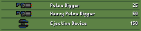 The pulse digger mainly is for cleaning your base or digging small pits because it will not dig through rock or concrete. The Heavy pulse digger has a problem where it propels you forward at high speeds, so it should be used in bursts. (it's the bullet mass but I forgot to change it.) They look the same due to a lock of ideas. The ED (Ejection Device) is used to get your brain bot out of bunkers quickly. If you want to use it with normal soldiers, USE IN BURSTS. The force may kill them. Explosives are also self explanatory. Explosive charge is much stronger. Careful with the heavy bomb. the shrapnel can hit your dropship. Attachment: