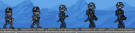 (Left to Right) Standard soldier. Soldier with a chest plate. Robot Stronger robot (brain bot with no brain) Brain bot. Can get shot many times.