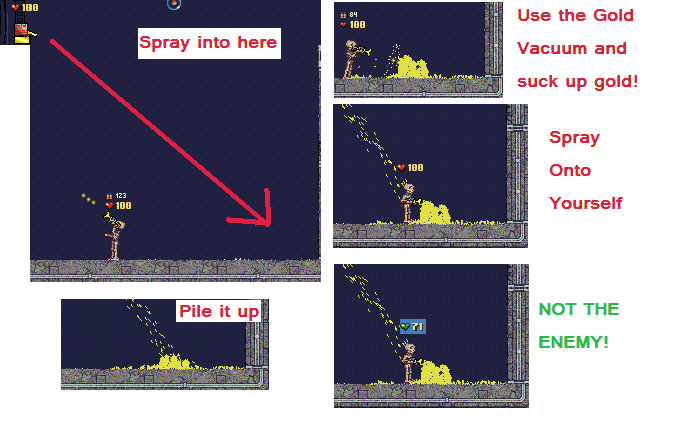 What better way to suck up the gold then using THE GOLD VACUUMUse of this Turret insures you are an illegible to the use of GoldGen.INC More Gold Creating ways coming soon! -may include lua script where you turn your enemies instantly to gold SPRAYING GOLD ONSELF MAKEs THYSELF FEEL RICHER! Introducing the world first organic ammo: THE FLESH GUN!! Grow things off walls and people. IT GROWS AND LIVES, A BLOB OF BRAINLESS GLOOP. Picture from lab: Attachment: