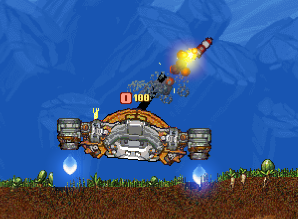 Anyways, it works like a dropship, it hovers though. You can hold the up arrow, or W key to gain a bit of altitude to get over obstacles. The cannon is aimed with the mouse, and fired with the mouse. There is no cargo bay. Accuracy can be improved by holding the down arrow or S key, which will make the ship stationary on the ground. Firing while moving isn't recommended, you might blow your self up!