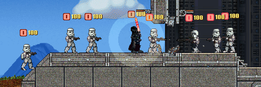 GALACTIC EMPIRE TECH R7 -Character armor nerfed to balance price points with vanilla game. -'Force Unleashed' style force grip mechanics. Once a character is flailing in the air, hold in a direction and let go of the fire button to send them flying. Left/Right throw will angle to your aim direction. -New Lightsaber mechanics. The fire button now blocks and attacks. Think of ammo as a 'block bar' - doing anything sustained will deplete it, and attempting to use it will stop it from recharging. Duck into cover to rest those arms! -Rain down doom with the slightly improved Imperial Star Destroyer! Now flies off screen when you're not looking less. -Is this a drill or something? GET IT HERE: http://www.mediafire.com/download.php?ldguwm7mpdp7nc0CREDITS: DRFF Regular Coders and the like for all the bits and pieces I have taken from you. ZomZom for Dark Trooper and some new sounds Lots of sounds from JK/JKII/Prequels