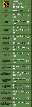 .  . This is my First mod, its mostly a resprite. I figured that the Coalition should have distinct Battalions and Brigades maybe even Branches like the US has the ARMY, NAVY, USMC, USAF and the USCG. So I made my own Brigade. Its called the 113th Coalition brigade, They are the most feared and respected among coalition forces. There commanders are knownd for there brutal tactics, efficiency and blood lust in battle. There engineer's are also known'd for altering equipment for the better BOOM!!. Name: 113th Brig. Commanding Officer: Major General. Adkiel Grimm Non Commissioned Officer In Charge: Command Sergeant Major. Rey Santiago Tactics: Brutal assault Battle Cry: Only In Death Shall We Rest!! Companies: 385th Infantry Comp, 673rd Engineer Core, 902nd Recon Comp and the 201st Airborne Rangers. this mod includes: Actors weapons Dropship What happens when you leave a couple of board engineer's, Ducktape, Spare parts and a MK2 Dropship??? you Get this thing I call it the... cough.. I mean they call it the BlackHawk Mk13th Here's what the weapon's look like after the Engineer core altered them Attachment: