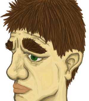 also I present... A FACE! (no reference, sort of caricature-ish, randomly selected colours, obviously all by me, one layer used, done in photoshop) full sized: Attachment: