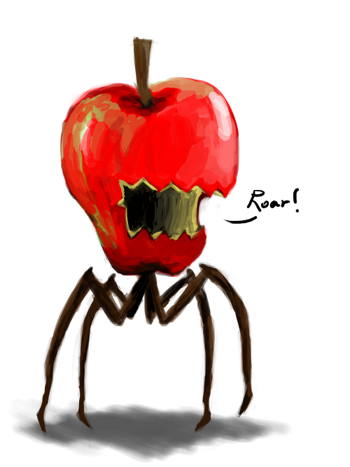 Nice one Soldat  The colors are a bit odd though... and maybe some more mood lighting? MAKE THAT APPLE SCARY!  Exploring the world of vector art.  Contrary: Trees are always a good challenge.