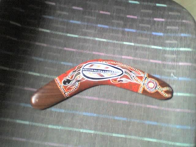 411570N3 wrote: Natti wrote: I have: -boomerang (real one, australian) Returning trick boomerang or 'TAKE YOUR BLOODY LEGS CLEAN OFF' hunting boomerang? Hunting boomerang. Non-returning.