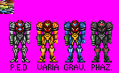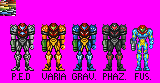 It occurs to me that the Gravity Suit is about, oh I dunno, 80% PURPLE. Which poses a slight problem for the in-game pallet... I can play around with a nice mix of grays, blues, and reds and probably trick your eye into thinking it's purple, but if you zoom in, you'll lose it... I'll see what I can do but as a back up plan, what suit should we use instead?