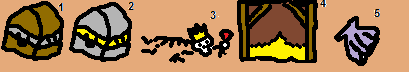 Rather then gold just strewn about, they're obtained thorough treasure items. 1:wooden chest, 2: iron chest (tougher but filled with gold), 3: Skeletons wearing valuable things, 4: small pocket with a pile of gold, 5: shells containing a dot of gold. Attachment: