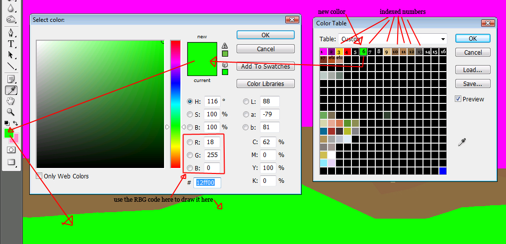 On a map i am trying to make my custom material does not load and show, instead its a sort of yellowish colour instead of the set texture. Can someone please fix it and tell me what's wrong with it so i don't do this again. I have given it it's own index number, i've changed it's colour for the mat of the scene .bmp and can't think of what's wrong, please help me. THanks