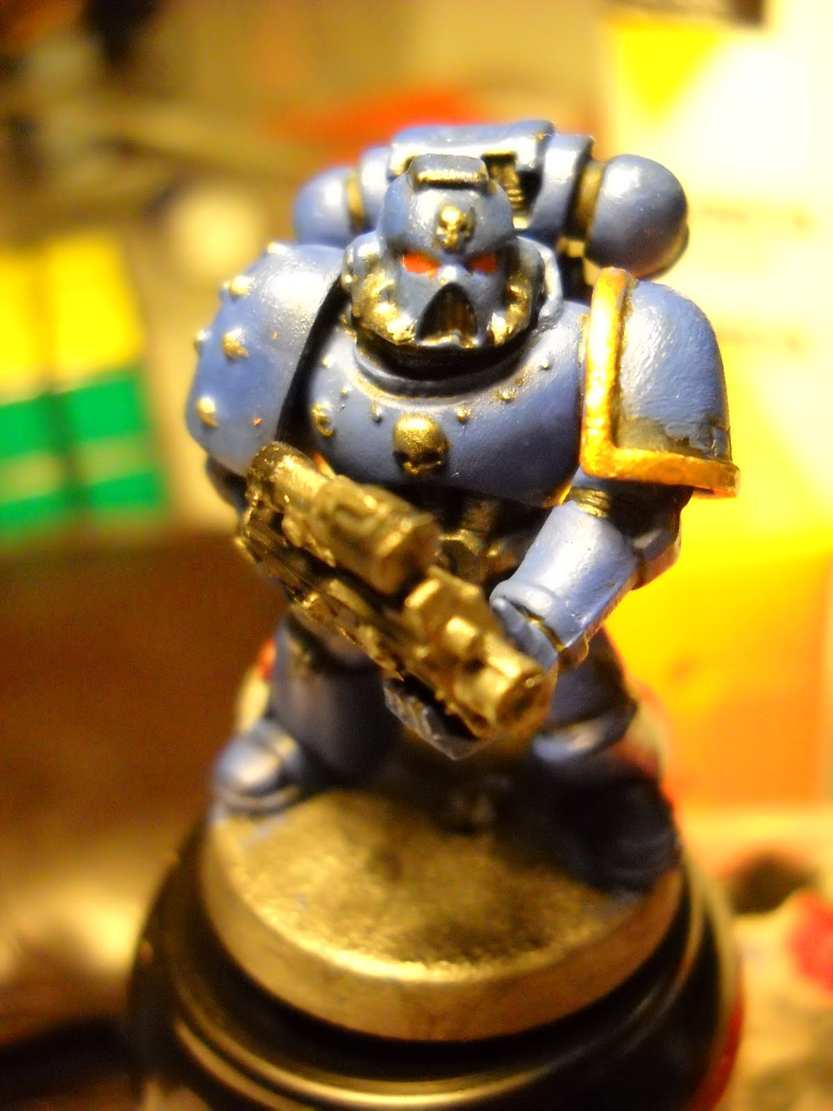 Thanks for the tips man, really appreciate it. You're also quite dead on with the color scheme bit. I haven't gone straight into the blood angels because, well, bright red doesn't look very appropriate for a 2 meter tall space marine.