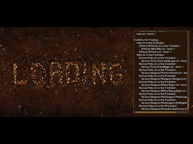 OKAY i have same problem but it says like this: Abortion in file .\system\reader.ccp, line 531, because: Referring to an instance ('ground flames') to copy from that hasn't been defined! in Coalition.rte/Devices/Weapons/Grenades/Explosives.ini at line 455! The last frame has been dumped to 'abortscreen.bmp' please help me im going grazy i want to play that awesome game!