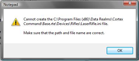 I am trying to load rte. files in C:\Program Files\Data Realms\Cortex Command. however each time i try I get an error message. cannot create folder... also if i try to edit code I get the error make sure path and file name are correct. This is my first attempt at modding so I don't know what I'm doing wrong.