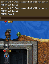 actorlist = {"Browncoat Light"}; for actor in MovableMan.Actors do if string.find(table.concat(actorlist),actor.PresetName) then print ("found") else print ("not found") end end