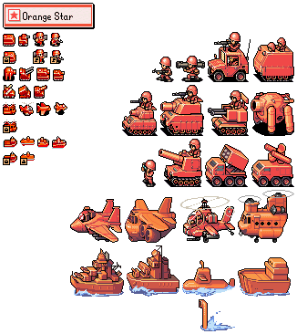 Could someone make some actors and guns from Advance Wars sprites? I don't know if this is possible given the proportions of the people. I have attached some sprites below. All sprites came from here