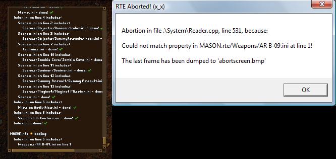 This is the error message, along with the abort screen.