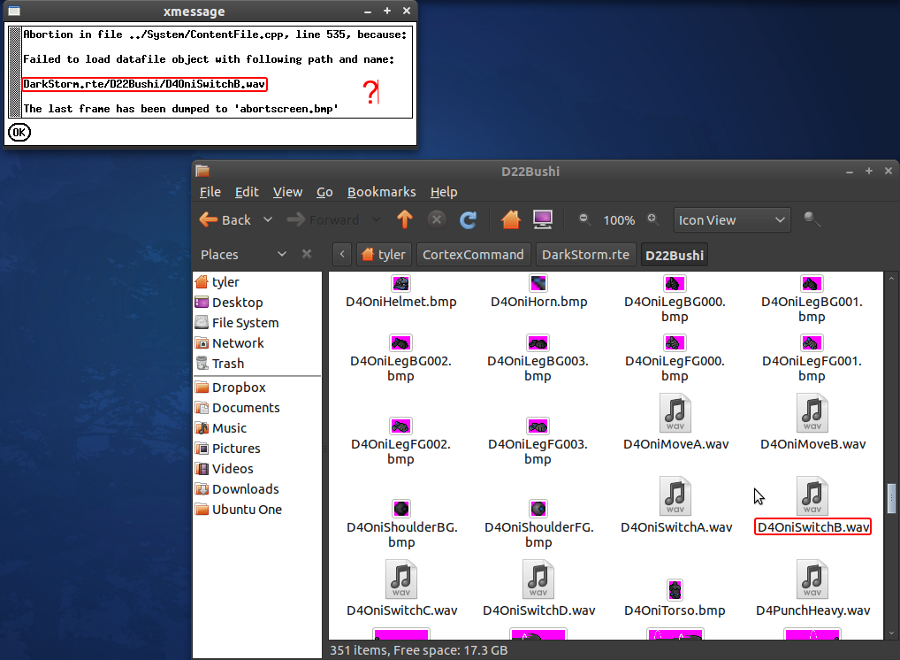 Attempting to start PulseAudio sound driver Initialized sound against PulseAudio sound driver. [Error] OpenAL Error: Invalid Value. [Error] Failed to create Audio Source (DarkStorm.rte/D35AssaultRifle/D35SSAssaultRifleShot.wav): Error creating audio source.