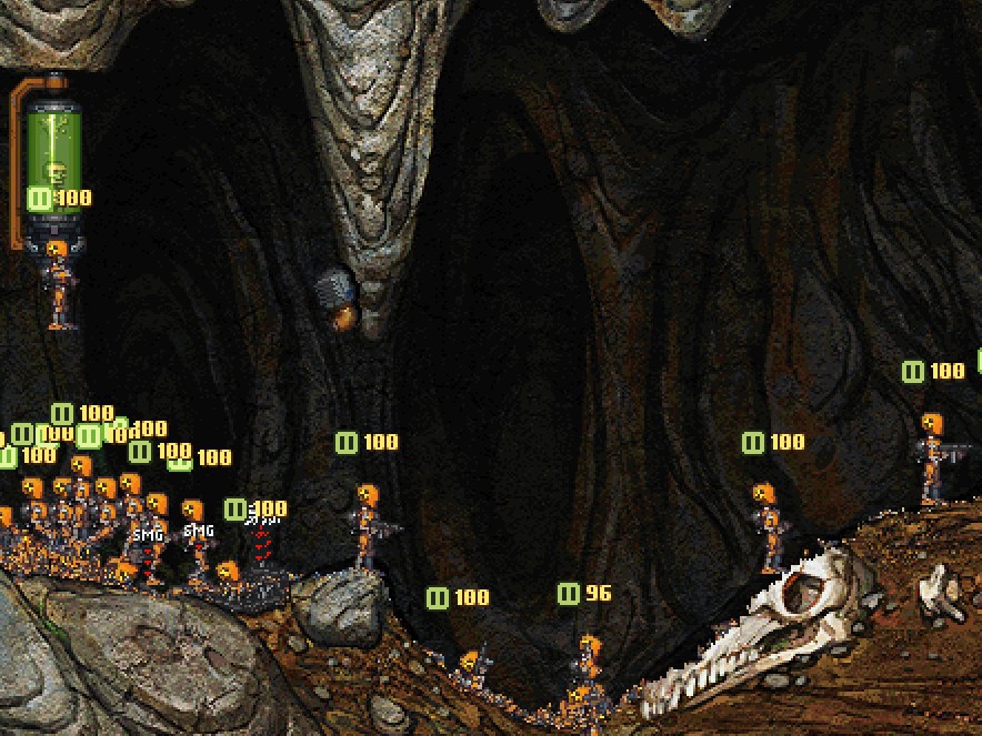 I was playing Cortex Command the other day, and rather miffed that none of the default scenes offered much in the way of challenging, yet focused, battle. ( :sad: I'm looking at you, Survival Modes.) To remedy this problem, I've changed Zombie Cave to be just the same, except instead of a few slow zombies with bombs, you have lots of fast-moving dummies with SMGs. This preserves the original feel of you VS lots of weaker poorly-armed enemies, while adding in an element of gunplay. While pistols could have been used, smgs are a more serious threat. I have not changed the final landing, since... well, to be honest, I've only managed to defeat the first spawn tank. :(